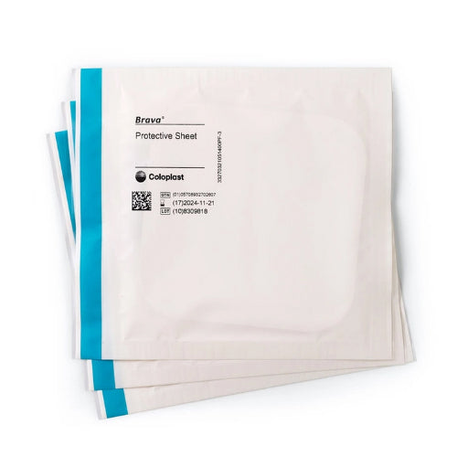 Brava Skin Barrier Protective Sheets, manufactured by Coloplast, provide a flexible and secure skin barrier around stomas. The protective sheets help to minimize the risk of maceration. The sheets feature an additional benefit of providing a ready surface for good adhesion while offering protection for the irritated skin from stoma output. They can also extend pouch wear time and minimize skin irritation.